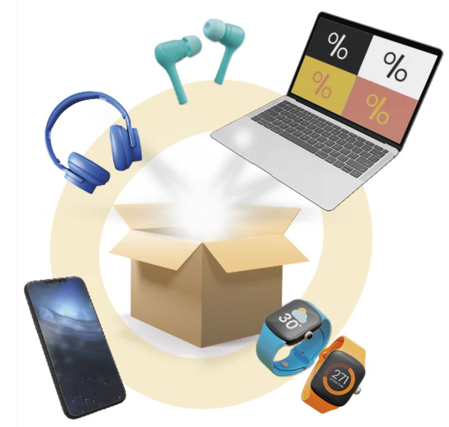 Artículos que no pueden venderse como “nuevos” (devoluciones, embalaje abierto o reacondicionados), muchos en perfecto estado o incluso sin uso. Nosotros los compramos en volumen, los revisamos y te los ofrecemos con 2 años de garantía.